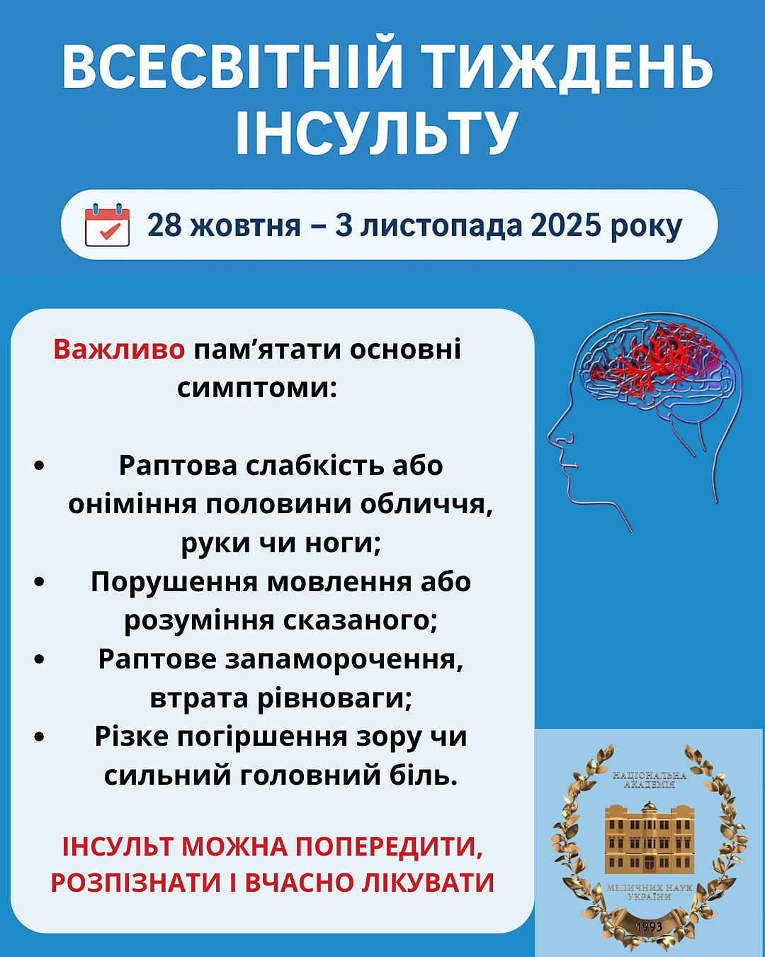 Будьмо уважними до себе і близьких, адже вчасно розпізнаний інсульт – це шанс на життя і відновлення.