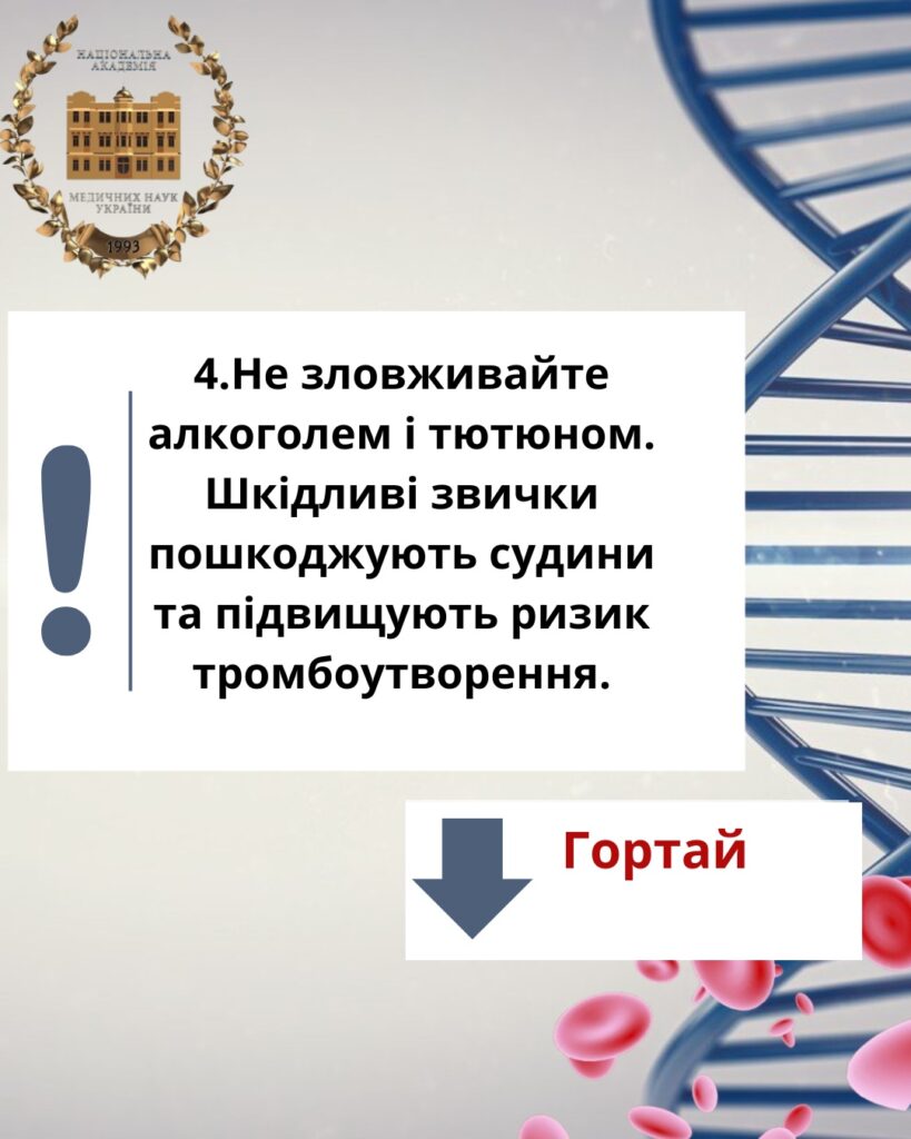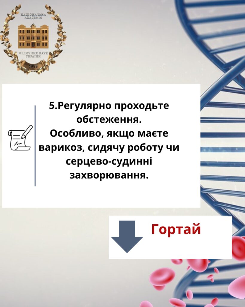 На слайдах нище ми підготували для Вас Топ 5 простих порад ,як запобігти утворенню тромбозу: ⬇