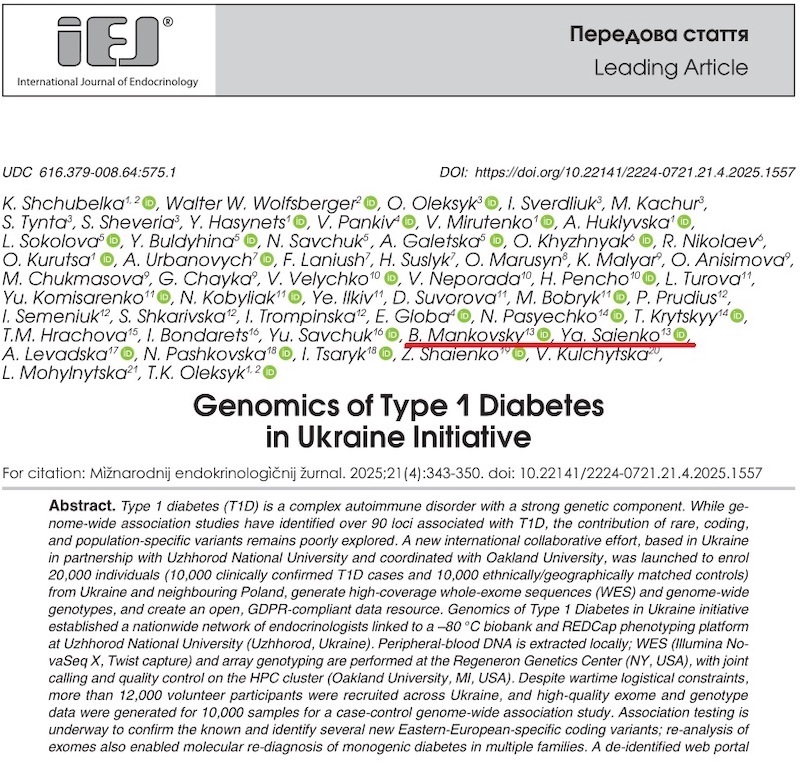 Перші результати дослідження оприлюднено в новому числі журналу “International journal of endocrinology (Ukraine)” (№4 за 2025 рік).