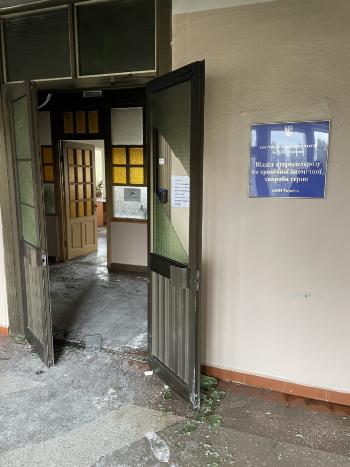 28 вересня унаслідок ракетного удару по Києву постраждала будівля Державної установи «Національний науковий центр «Інститут кардіології імені академіка М.Д. Стражеска» НАМН України. було суттєво ушкоджено приміщення четвертого поверху, частково третього та п’ятого.