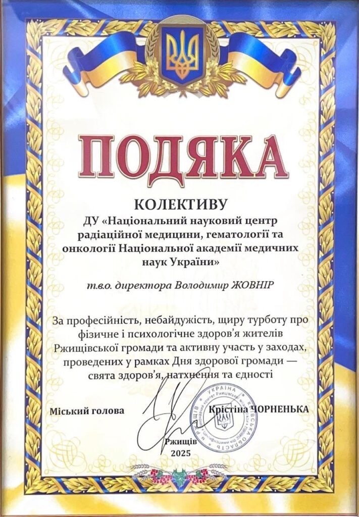 Завдяки підписаному меморандуму про співпрацю та партнерство між Національною академією медичних наук України та Обухівською районною державною (військовою) адміністрацією, 10 жовтня у місті Ржищів відбувся День здорової громади Київщини — масштабна подія, присвячена турботі про фізичне, ментальне та соціальне здоров’я мешканців області.