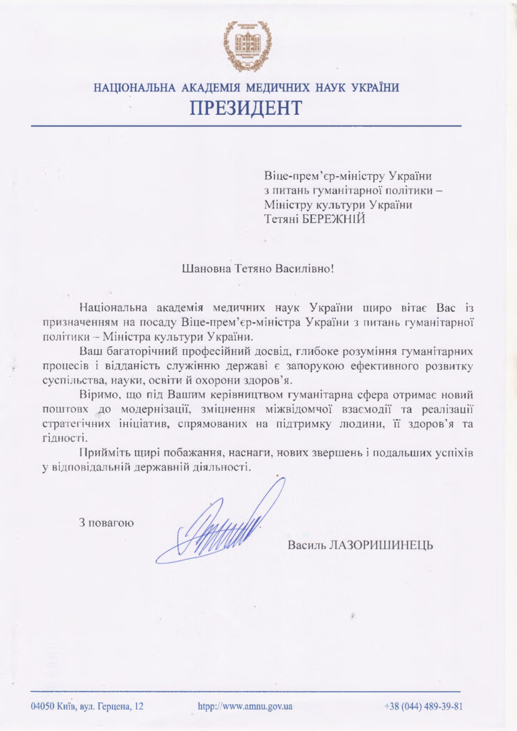 Новини Вітання Президента НАМН України з нагоди обрання Бережної Тетяни Василівни на посаду Віце-прем’єр-міністра України з питань гуманітарної політики — Міністра культури України від Прес-служба - 23.10.2025 36 Поділитись FacebookTwitterPinterestWhatsApp