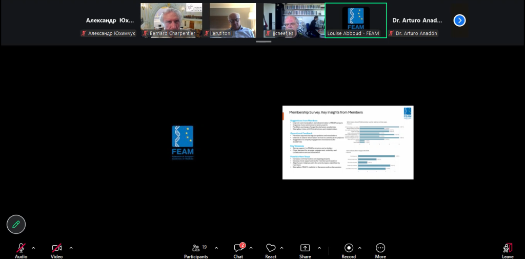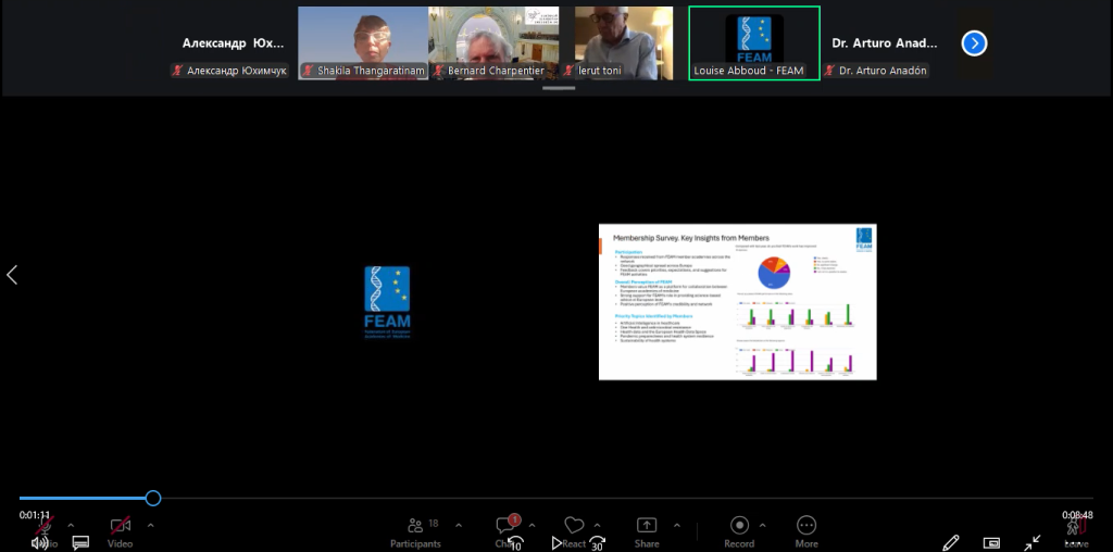 Дякуємо учасникам засідання за конструктивний діалог та підтримку. Сподіваємося на подальшу плідну співпрацю та продовжуємо інформувати про розвиток взаємодії між Національною академією медичних наук України та Federation of European Academies of Medicine (FEAM).